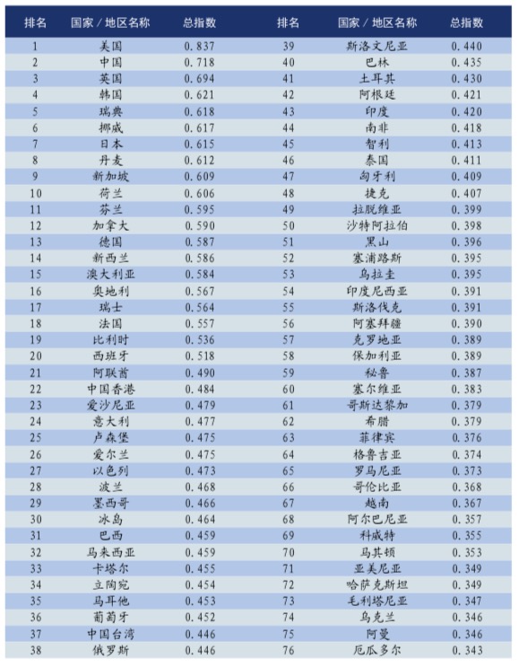 在调查了150个国家和地区后,9月18日,数字经济论坛、阿里研究院和毕马威,联合发布了《2018全球数字经济发展指数》报告。美国、中国、英国、韩国、瑞典、挪威、日本、丹麦、新加坡、荷兰,是2018年全球数字经济发展指数的前十名。