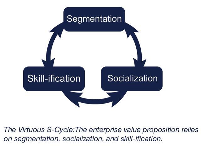 也就是说,细分的用户可以更容易地鼓励他们之间的社交,并针对他们的实际和预期需求定位新技能。社交化的用户允许组织根据需要去识别所要服务的细分用户和/或新技能。技能化鼓励了用户围绕提供的应用和功能,从“自我细分”和“社交化”的方面提供建议与评论。
