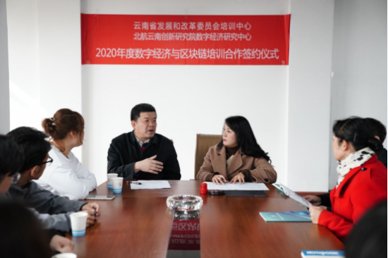 为满足云南省各政府机关、企事业单位对数字经济发展与传统产业转型升级的需求,云南省发展改革委培训中心将联合北航数字中心,围绕云南数字经济发展政策解读、数字经济概念普及、发展前沿地区数字经济案例分享、数字经济各领域的应用及意义、区块链技术、区块链应用场景、区块链成熟案例、区块链+等主题开设系列培训课程,积极探索各类培训模式、开展多层面、多方式、多种类定制化培训,共同推动云南数字产业化与产业数字化发展进程;并联合发布数字经济国内外要闻、周刊、月刊,共同举办数字经济研讨会议及论坛,共建数字经济发展生态。