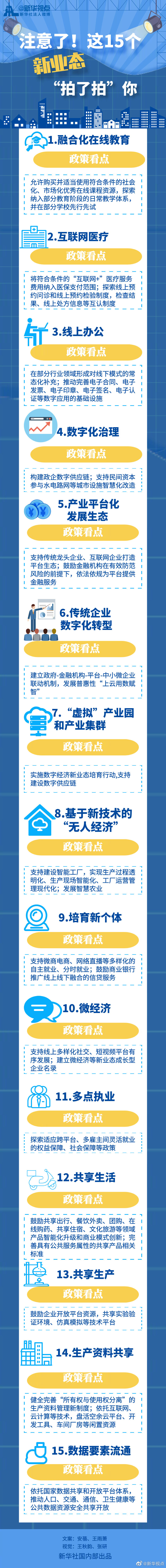 在线教育、“虚拟”产业园、新个体经济、共享生产……我国将支持15种新业态新模式发展,提速数字经济,激活消费新市场、培育壮大新动能,为经济高质量发展蓄势助力。