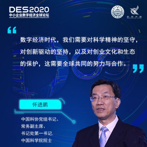 中国科协党组书记、常务副主席、书记处第一书记怀进鹏出席主论坛并发表题为《汇聚中小企业力量推动数字经济合作发展》的主旨报告。怀进鹏在报告中分析了数字经济发展趋势,并探讨数字经济带来的机遇与挑战。从2015年11月美国启动数字经济议程以来,数字经济、数字转型、数字生存以及数字生活已成为全球不同国家生活的重要部分。中国数字经济在整个国民经济中具有着举足轻重的地位,2019年中国数字经济GDP占比超36%。