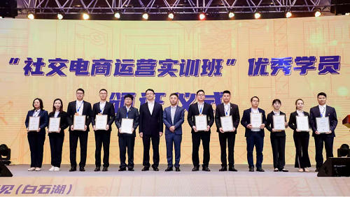 智见在职业技能培训领域瞄准技术变革和产业优化升级的方向,推进产教融合,促进教育链、人才链与产业链、创新链有效衔接。此次大会,中国(钦州)社交电商职业技能实训基地正式揭牌,并为第一期优秀学员颁发证书。同时,智见(广西)社交电商产业联盟也正式成立,赵亚辉董事长、郭炜董事长上台见证,并与联盟单位代表合影。