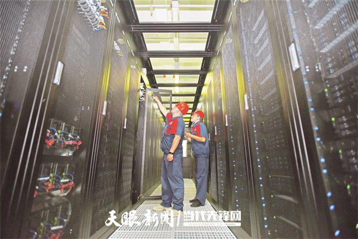 6月17日,工作人员在中国电信云计算贵州信息园机房内巡检。 贵州日报天眼新闻记者 谢佳杰 摄
