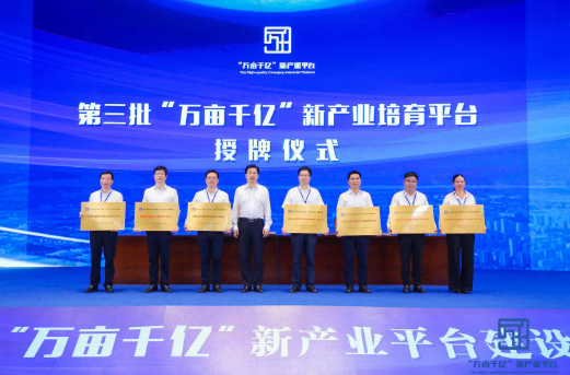 现场推进会上,还举行了浙江省第三批“万亩千亿”新产业培育平台授牌仪式,宁波国家高新区工业互联网产业平台、温州乐清智能电力物联网产业平台、湖州吴兴智能物流装备产业平台等7家获得授牌。(总台记者 李佳)
